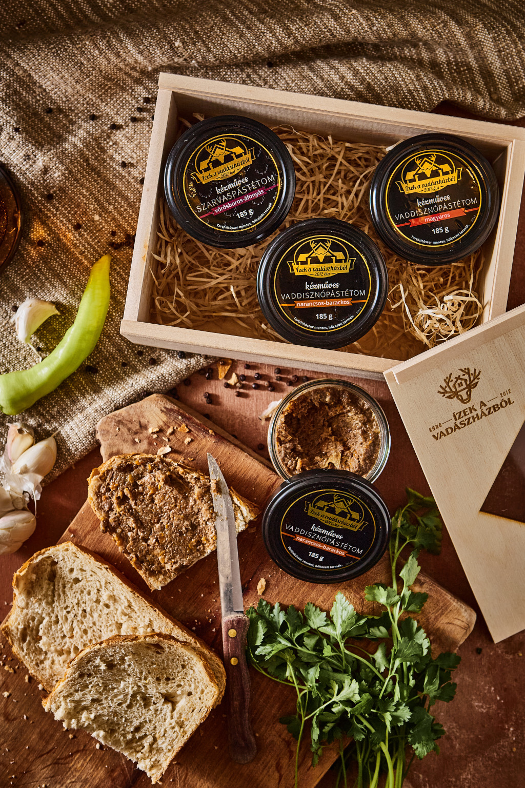 Ön választhat a kívánt ízek közül, hogy még személyesebb ajándékkal lepje meg szeretteit. A választható ízek: Szarvaspástétom áfonyás-vörösboros, Szarvaspástétom vargányagombás, Vaddisznópástétom csípős-magyaros, Vaddisznópástétom magyaros, Vaddisznópástétom vadas, Vaddisznópástétom zöldborsos.