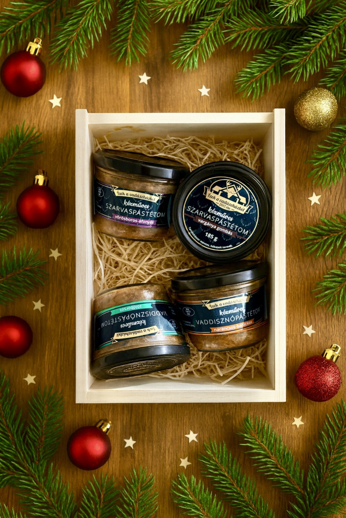 Az Ízek a Vadászházból prémium ajándékdoboza tökéletes választás az ínyenceknek és vadhús kedvelőknek.